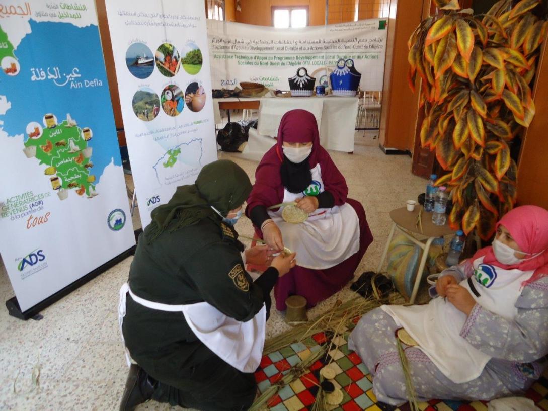 - Une formation au profit de 16 femmes rurales de la commune de El Maïne, wilaya d’Aïn Defla, conformément aux termes de références n°22 relatifs à l’organisation de session de formation en vannerie. Cette activité a été encadrée par Mme Rekia Benkrima, experte sénior formatrice en vannerie. L’activité s’est déroulée au niveau de la bibliothèque communale d’El Maïne (50Km du chef-lieu de wilaya).