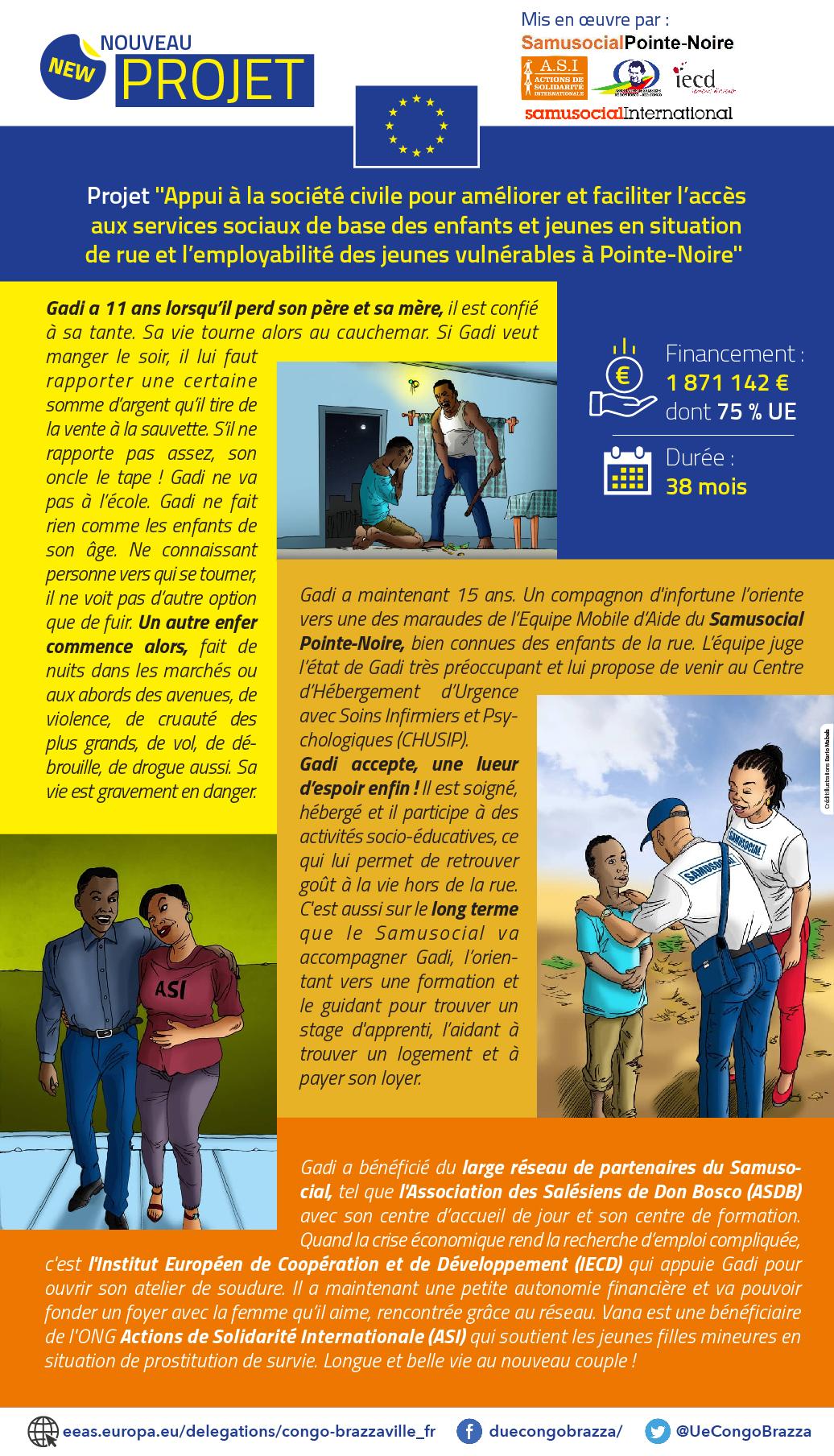 Lancement des nouveaux projets : "Appui à la société civile pour améliorer et faciliter l'accès aux services sociaux de base des enfants et jeunes en situation de rue et l'employbilité des jeunes vulnérables à Pointe-Noire"