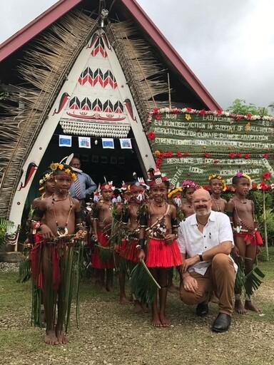 Following a severe "El Nino" episode, the European Union allocated fund to several countries in the world to provide support to affected communities. Papua New Guinea was the recipient of a total of EUR 3 millions. A project to strengthen food production capacity and the resilience to drought of vulnerable Communities was launch in the island of Kiriwina in the Trobriands group of the Milne Bay Province of Papua new Guinea. Mr Adrien Mourgues, Team Leader of Planet and Prosperity at the EU Delegation is with the youth group that was part of the welcoming ceremony.