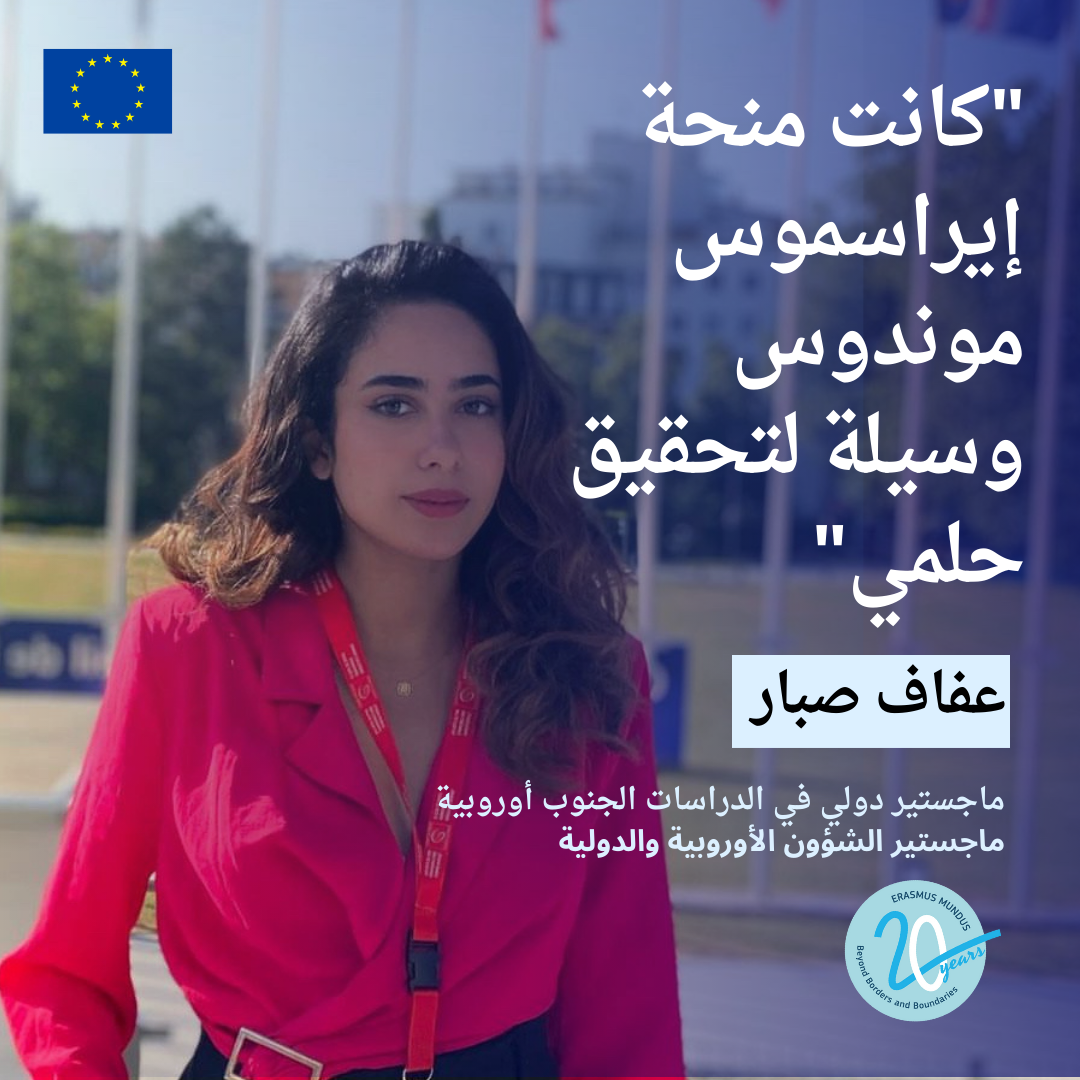 20 عاماً من برنامج إيراسموس موندوس : عفاف صبار "كانت منحة إيراسموس موندوس وسيلة لتحقيق حلمي"