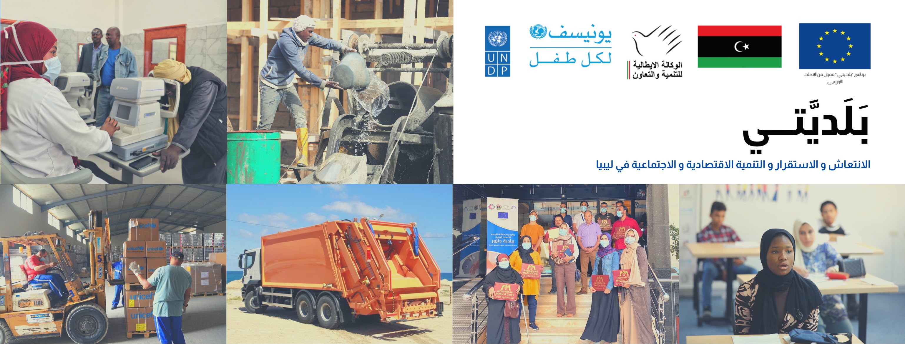 يعمل برنامج بلديتي مع البلديات في جميع أنحاء ليبيا بهدف تحسين نفاذ المتساكنين إلى الخدمات العامة ذات الجودة مثل الصحة والتّعليم والمياه والصّرف الصحّي. يتم تنفيذ البرنامج من قبل الوكالة الإيطالية للتّعاون الإنمائي وبرنامج الأمم المتحدة الإنمائي ومنظمة الأمم المتحدة للطفولة (اليونيسف).