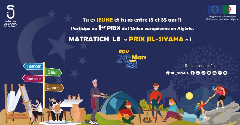 Soyez prêt.e.s à participer au « Prix JIL-SIYAHA » , le 1er Prix organisé par l’Union européenne en Algérie , en partenariat avec le Ministère du Tourisme et de l’Artisanat.