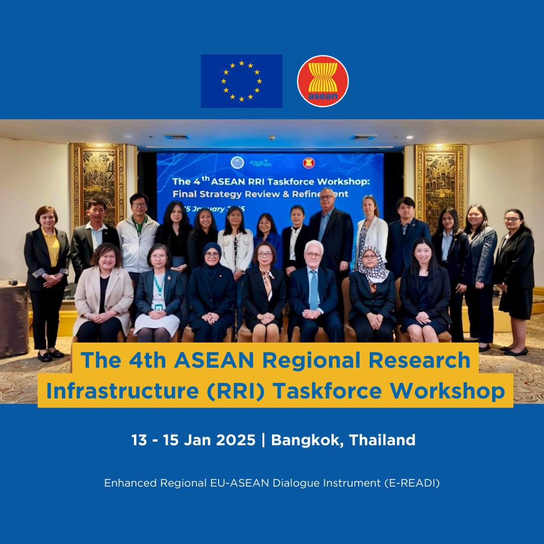 The 4th ASEAN Regional Research Infrastructure (RRI) Taskforce Workshop, held in Bangkok from 13 to 15 January 2025, marked a key step in advancing ASEAN’s efforts to build a more inclusive and connected research ecosystem. Attended by around 20 regional and international experts, the three-day workshop focused on finalising the ASEAN RRI Strategy and aligning it with the ASEAN Plan of Action on Science, Technology, and Innovation (APASTI) 2026–2035.