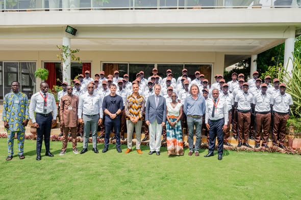 Les nouveaux agents de sécurité, recrutés et formés, ont été présentés à l’Ambassadeur de l’Union européenne au Bénin, M. Stéphane Mund.