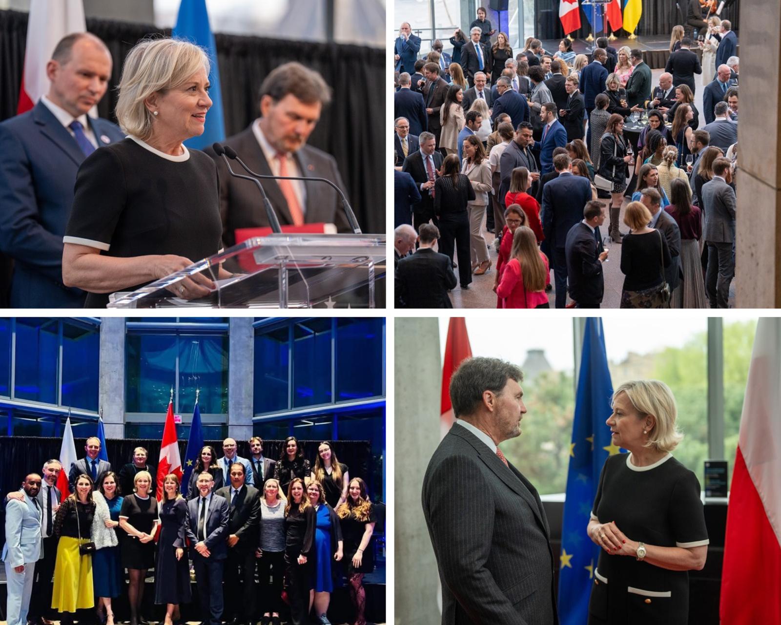Les hôtes ont été particulièrement honorés par la présence du très honorable Richard Wagner, Juge en chef du Canada, dont l’intervention a rappelé l’importance du lien transatlantique UE-Canada et des valeurs que nous défendons ensemble. Le programme de l'événement comprenait également un hommage musical spécial à nos amis et voisins ukrainiens, à leur courage et à leur résilience.