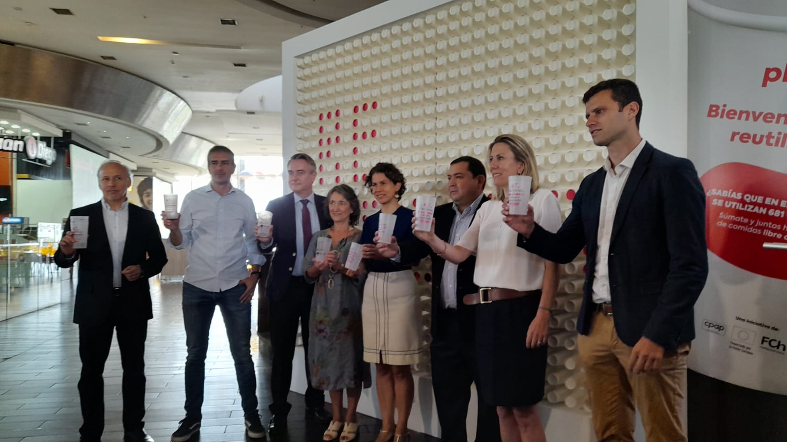 La actividad de lanzamiento de esta campaña contó con la participación de la ministra de Medio Ambiente Maisa Rojas; el embajador de la Unión Europea en Chile, León De la Torre; la subgerenta de Consumo y Producción Sustentable de Fundación Chile y team leader proyecto CPAP en Chile, Karien Volker; el gerente de Operaciones de Mallplaza, Antonio Braghetto; y el alcalde de La Reina, José Manuel Palacios.