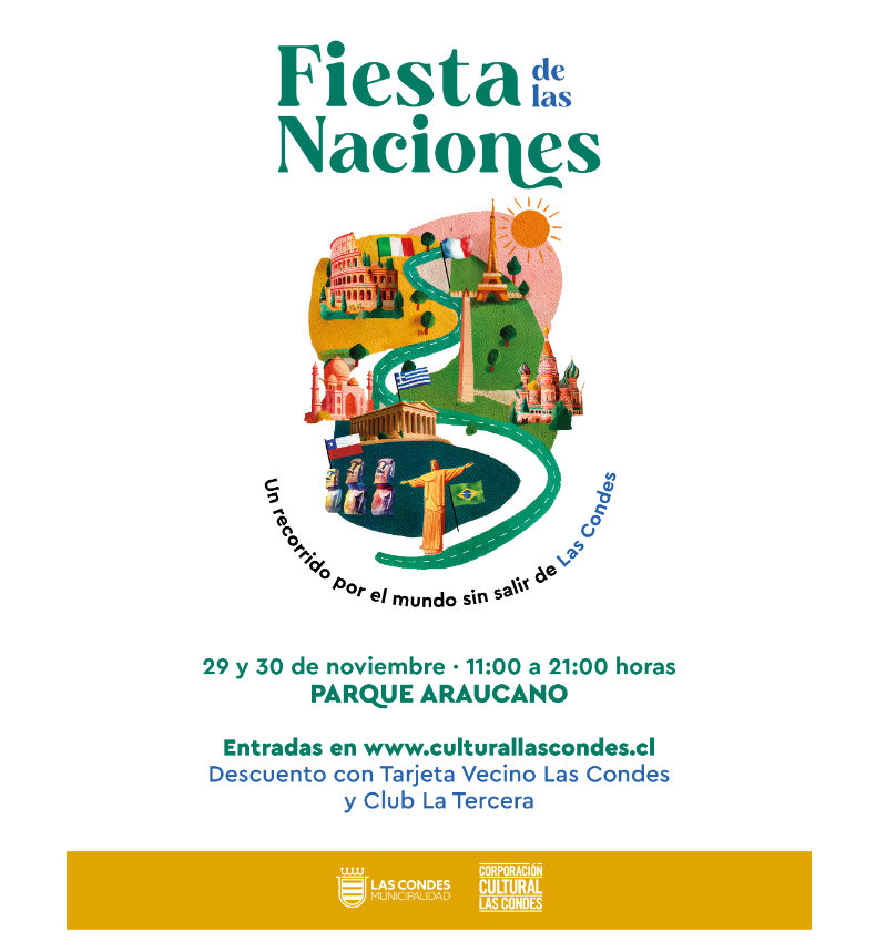 Durante el fin de semana del 29 y 30 de noviembre, el Parque Araucano se transformará en el punto de encuentro para realizar un completo recorrido por el mundo, con stands de los países, espectáculos artísticos y experiencias para toda la familia, promoviendo la diversidad cultural y el encuentro entre comunidades.