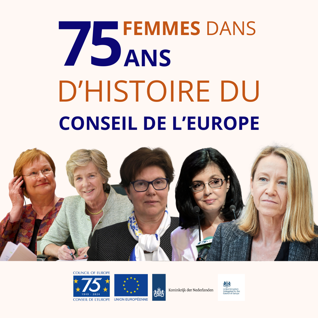 Le projet "75 femmes dans 75 ans d'histoire du Conseil de l'Europe" est co-organisé avec le Conseil de l'Europe et les Représentations permanentes du Royaume des Pays-Bas et du Royaume-Uni.