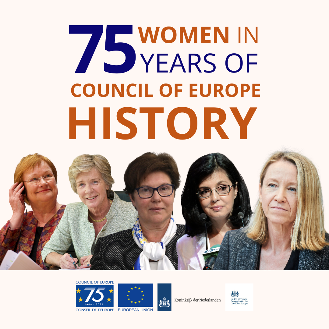 The project "75 women in 75 years of Council of Europe history" is co-organised with the Council of Europe and the Permanent Representations of the Kingdom of the Netherlands and the United Kingdom.