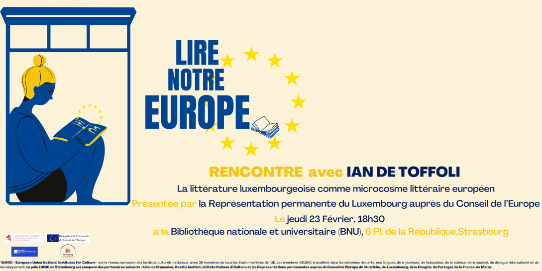 Dans le cadre de Strasbourg capitale mondiale du livre 2024, le réseau EUNIC Strasbourg met à l’honneur la littérature européenne : « Lire notre Europe » invite à un voyage littéraire à travers l’Europe à la découverte et à la rencontre d’œuvres et de ceux et celles qui les font vivre.
