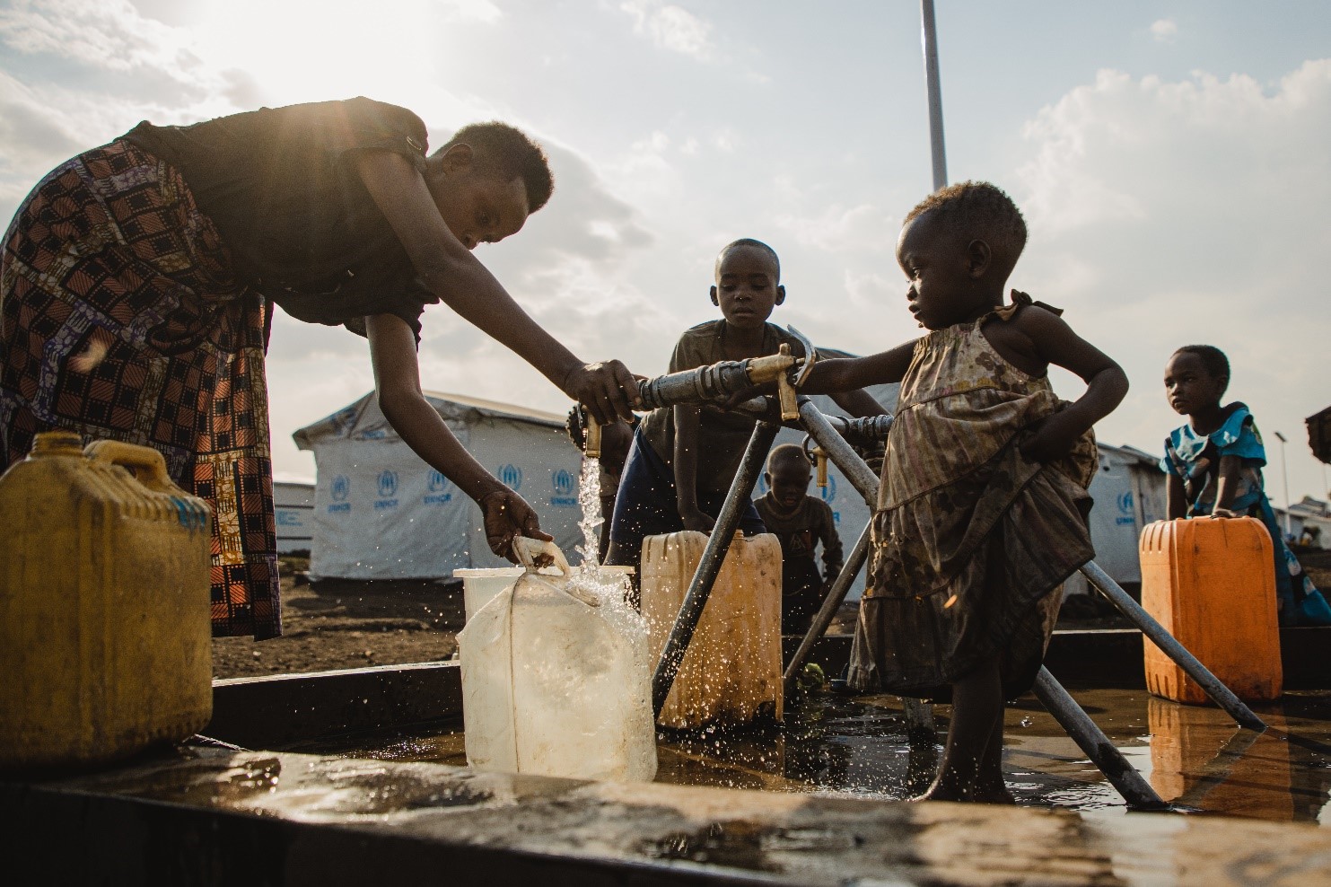 Goma, le 25 janvier 2024 – Une extension majeure du réseau d'eau municipal de Goma, dans la province du Nord-Kivu, a été inaugurée aujourd'hui, fournissant de l'eau à environ 150 000 personnes dans les communautés déplacées et hôte. Financé par l'Union européenne par l'intermédiaire de l'UNICEF, le projet remplace le transport coûteux de l'eau par camion vers les sites de personnes déplacées de Bushagara et de Kanyaruchinya grâce à un système d’adduction d'eau de grand diamètre, de réservoirs et de bornes fontaines. « Pour les centaines de milliers de personnes qui ont dû quitter leurs maisons à Rutshuru depuis 2022, l'eau est une priorité absolue pour survivre », a déclaré Nicolás Berlanga, Ambassadeur de l'Union européenne en RDC. « Nous devions trouver un moyen de fournir ce bien essentiel de manière pratique et rentable. En construisant ce réseau, nous pouvons nous assurer que les personnes déplacées, ainsi que les communautés d'accueil, ont accès à l'eau de manière durable ». Le projet comprend plus de 5 kilomètres de tuyaux souterrains et une installation de pompage équipée de deux pompes d'une capacité de 150 000 litres par heure. L'eau est puisée dans le réseau municipal existant de la ville. « Dans une crise comme celle-ci, nous cherchons comment apporter un changement durable », a déclaré le Représentant de l'UNICEF en République Démocratique du Congo, Grant Leaity. « Le transport de l'eau par camion était difficile à maintenir, surtout avec les niveaux de financement actuels. L'économie signifie que le nouveau système offrira un bien meilleur rapport qualité-prix et laissera un héritage pérenne, non seulement pour les personnes déplacées, mais aussi pour tous ceux qui vivent dans cette zone au nord de Goma ». Grâce à un financement de la France, des travaux de construction ont commencé pour étendre le réseau à Kanyaruchinya, et des points d'eau seront installés le long de la route principale qui mène au nord de Goma. Cette extension du réseau municipal d'eau pour desservir les sites de personnes déplacées ainsi que les communautés d'accueil met en évidence l'impact à long terme sur le développement que les interventions humanitaires peuvent avoir - ce que l'on appelle l'approche Nexus, des synergies entre les actions humanitaires, de développement et de paix. « Les conditions de vie à l'intérieur et autour des sites de personnes déplacées sont extrêmement difficiles », a déclaré Johan Heffinck, qui supervise les programmes humanitaires de l'Union européenne dans la région des Grands Lacs. « L'approvisionnement fiable en eau potable permettra non seulement d'améliorer les conditions de santé et d'hygiène, mais aussi de donner aux communautés plus de dignité dans leur vie quotidienne ». La RDC est confrontée à la pire épidémie de choléra qu'elle ait connue depuis six ans, l'épicentre étant l'est du pays. Il est donc plus important que jamais de disposer d'eau potable et d'améliorer les conditions d'hygiène et d'assainissement. En 2023, le nombre de cas de choléra a triplé pour atteindre 52 506 cas suspects, dont 470 décès. Plus de 40 pourcents des malades sont des enfants. Le Nord-Kivu est l'épicentre de l'épidémie, avec près de 65 pourcents de tous les cas. L'épidémie de choléra n'est qu'un des éléments de la crise complexe et prolongée qui sévit dans l'est de la RDC, où plus de 15 millions d'enfants subissent les conséquences des conflits armés, des déplacements de population et des épidémies récurrentes.