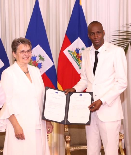 Présentation des Lettres de Créance de Mme Sylvie Tabesse, nouvelle Ambassadrice et Cheffe de la Délégation de l'Union Européenne en Haiti au Président de la République d'Haiti, Son Excellence Jovenel Moise.