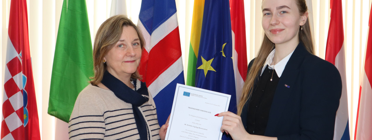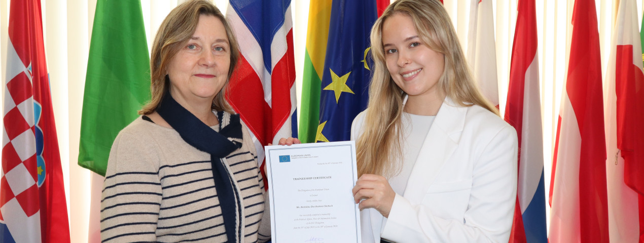 Ms. Þórhildur Vígdögg Kristínardóttir concluded her traineeship last week. The EU Delegation thanks her for her valuable contribution to the Delegation's work.