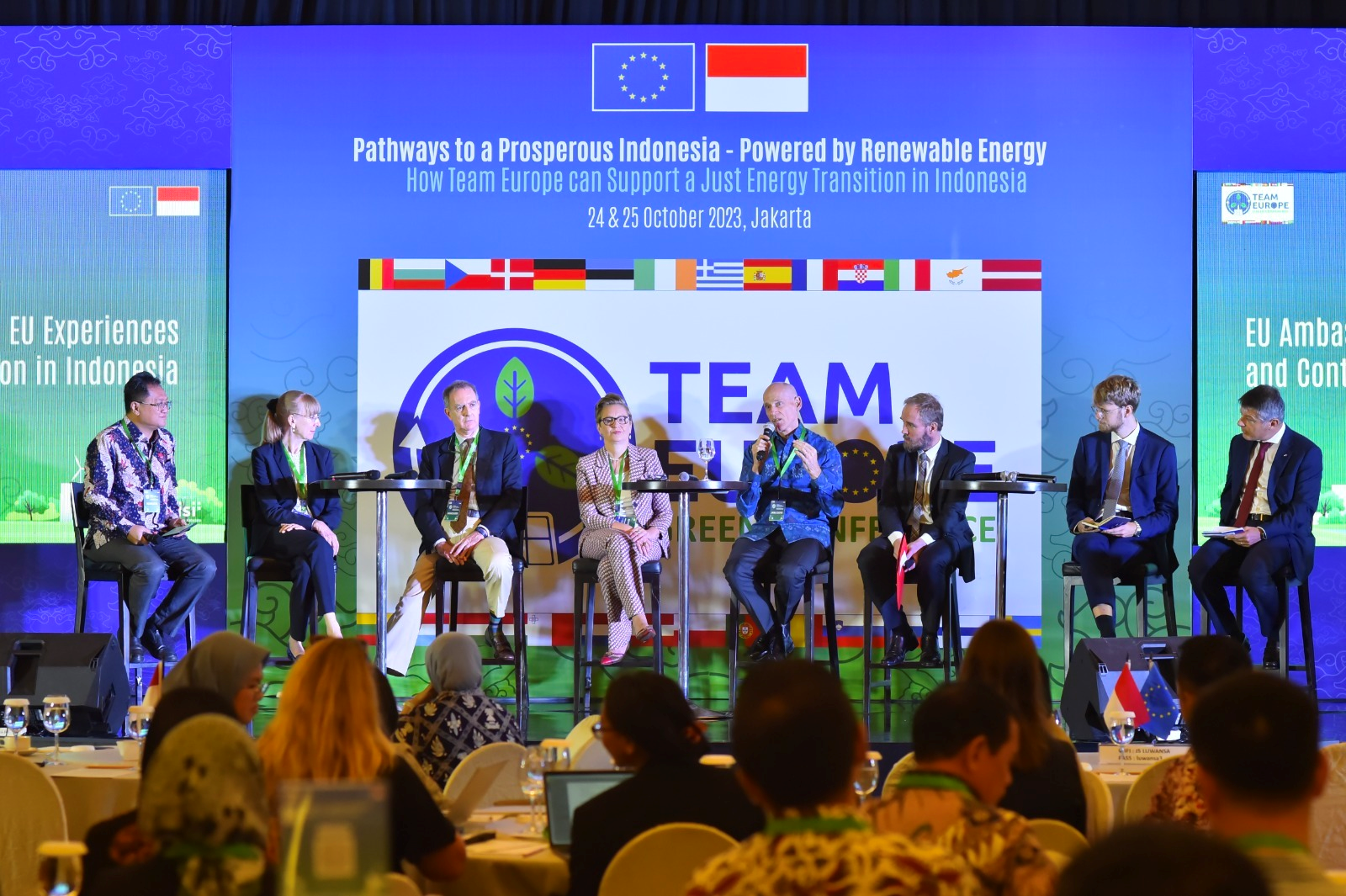 The Delegation of the European Union (EU) to Indonesia presented a two-day conference on 24-25 October 2023 on how the EU and the EU Member States (Team Europe) can support a Just Energy Transition in Indonesia, themed “Pathways to a Prosperous Indonesia – Powered by Renewable Energy”. The Conference brought together many stakeholders in the energy sector, from government, international organisations, private sector to civil society.