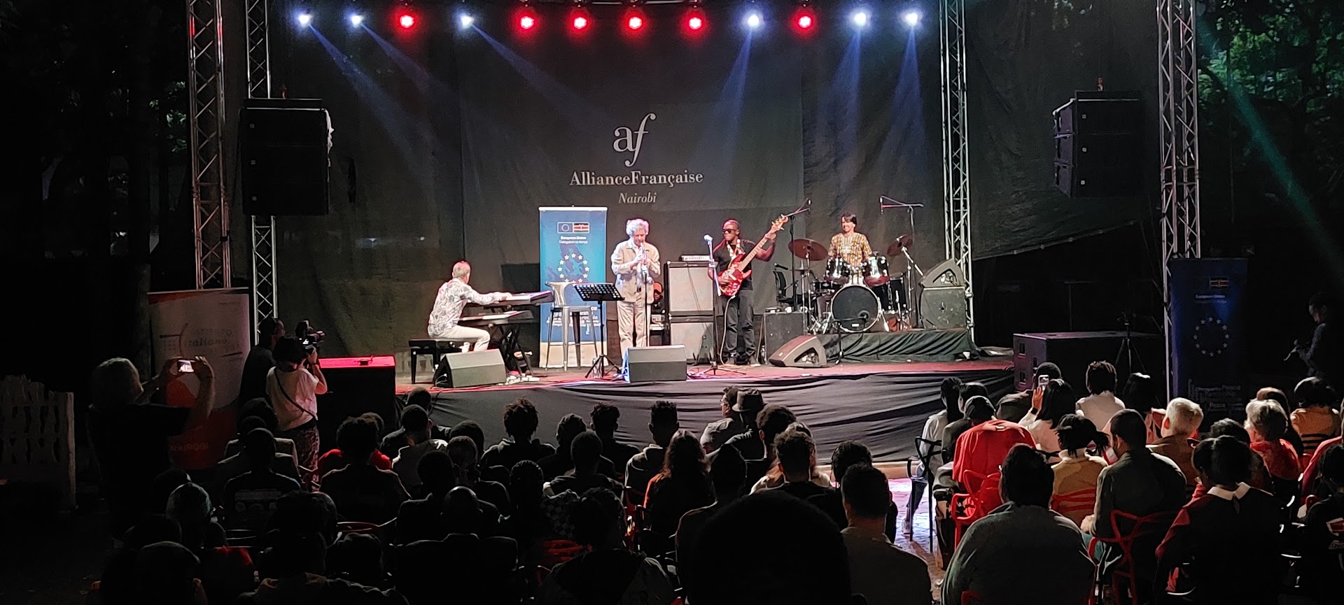 On the trumpet and drums – Alain Brunet and Pascal Bouterin both from France, on the bass guitar- Eddie Grey of Kenya and on the piano, Nico Morelli from Italy.