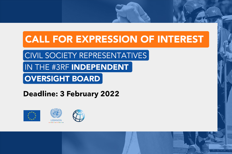 This Call for Expression of Interest is being issued by the EU-UN-World Bank 3RF Technical Team and aims to facilitate the nomination of three vacant civil society representation (“Civil Society Organizations” – CSOs) in the IOB after the first call for expression of interest on 28 April 2021.