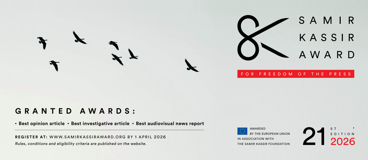 The Samir Kassir Award for Freedom of the Press is open to professional journalists from North Africa, the Middle East, and the Gulf. The deadline for sending in contributions is 1 April 2026. Three awards will be granted for the best: