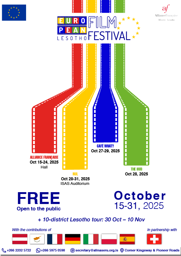 The festival is funded by the European Union, with complementary contributions from seven EU Member States, namely by Austria, Cyprus, France, Germany, Italy, Poland and Spain, and the Embassy of Switzerland. Screenings will be held at key locations including Alliance Française, the National University of Lesotho (NUL), The Hub in Morija, and Café What? in Maseru. The EUFF is more than just a showcase, it is a dynamic celebration of cinema that fosters cultural exchange, understanding, and friendship between Europe and Southern Africa.