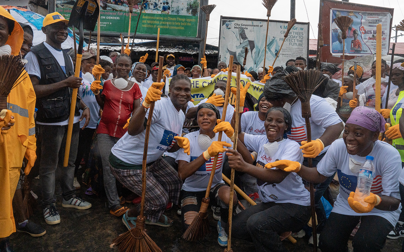 Despite the challenges posed by heavy downpour of rain, dozens of local community volunteers joined the EU and its partners in cleaning up West Point. Armed with gloves, shovels, and waste bags, the volunteers braved the storm to collect piles of plastic sachets, market bags, and other debris that littered the area’s streets.