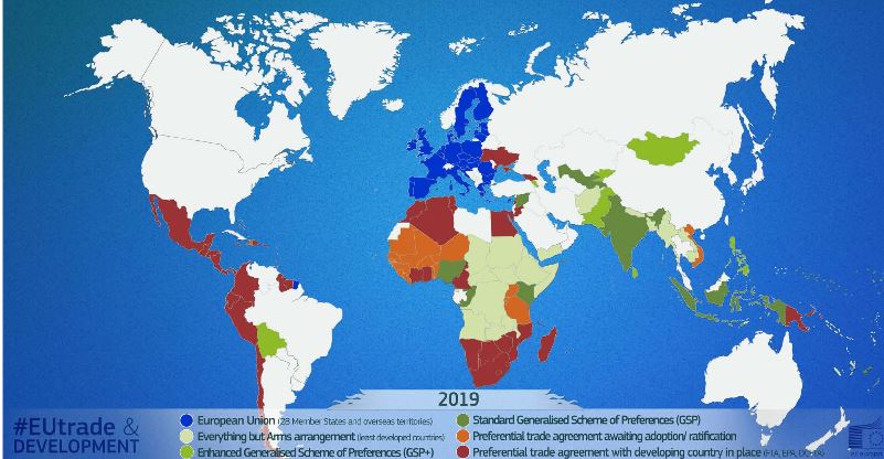 The EU’s trade agenda contributes to the United Nations Sustainable Development Goals around the world. The preferences provide beneficiary countries with an incentive to take further steps towards effectively implementing international conventions related to human rights, labour rights, environment and good governance.