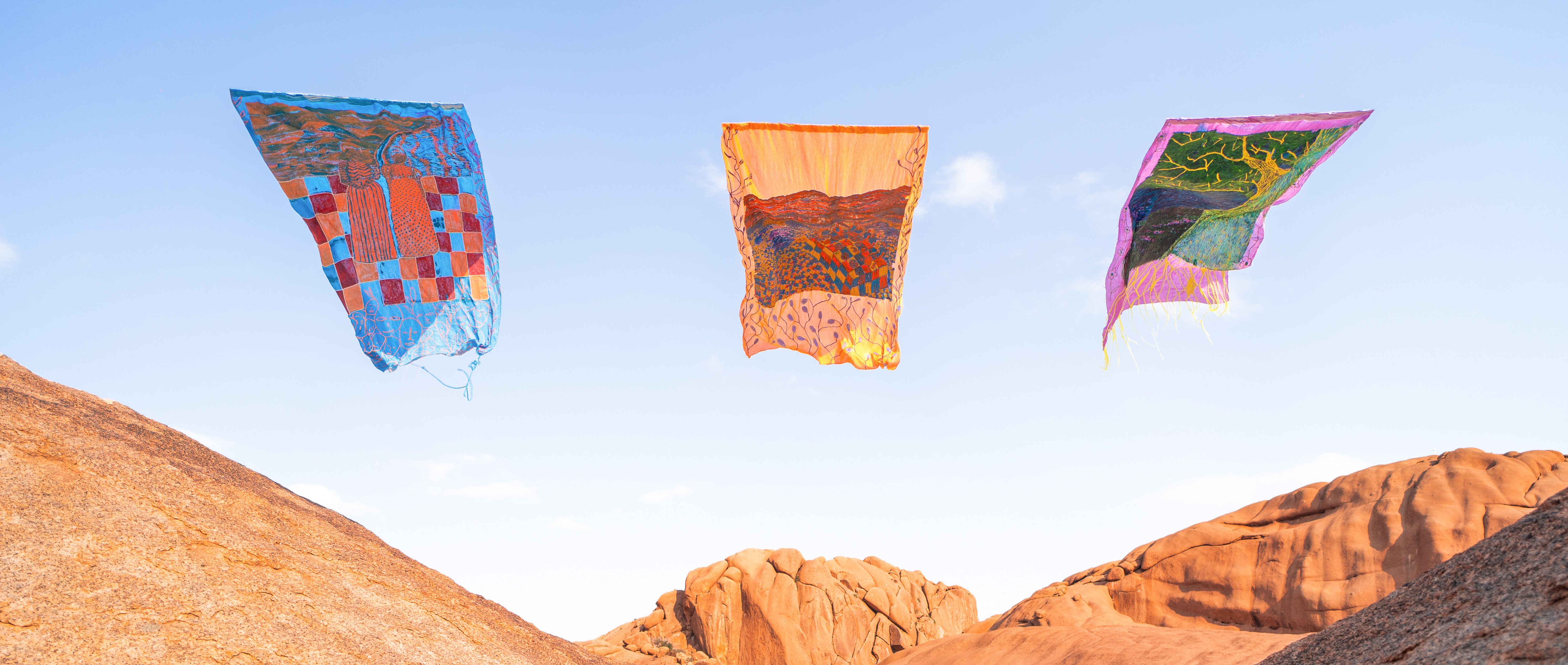 The exhibition marks the first public presentation of works by Namibian artist Vitjitua Ndjiharine and Spanish artist Rocío Asensi, created during their joint residency in Swakopmund in August 2025. Their collaboration blends science fiction, environmental awareness and cultural storytelling, a visual dialogue between sand, sun and imagination.