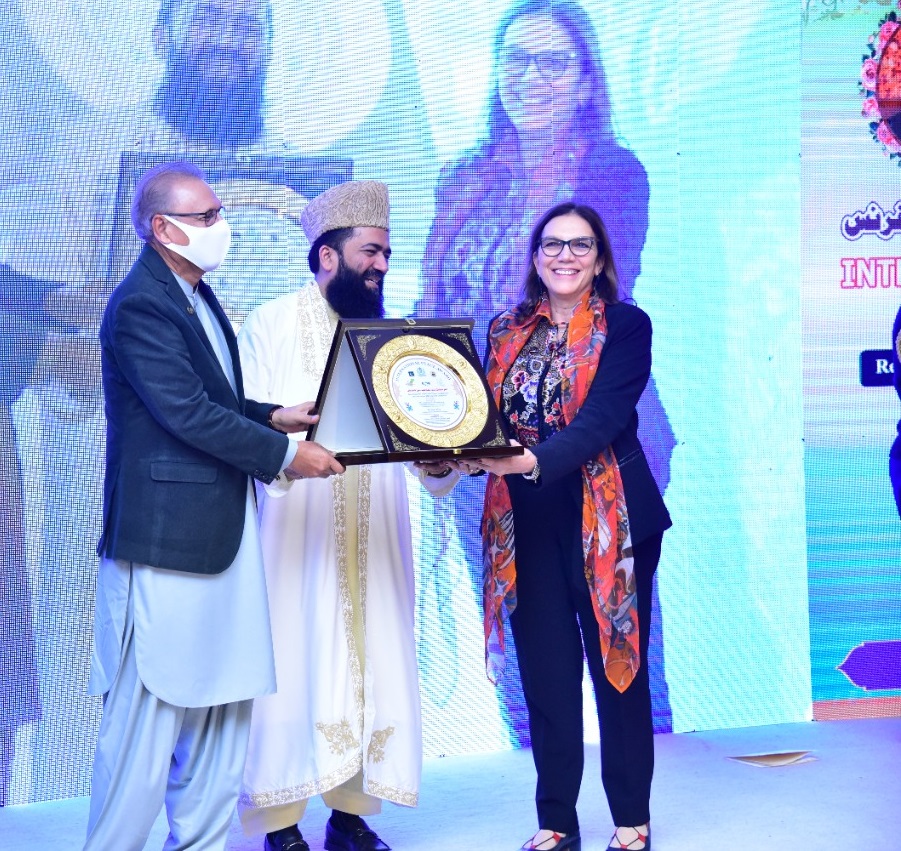 In recognition of her services for the cause of interfaith harmony, the President of Pakistan H.E. Dr Arif Alvi bestowed the International Peace Award on the EU Ambassador to Pakistan H.E. Androulla Kaminara during the International Interfaith Peace Conference held in Islamabad on 24 November. Organised by the Interfaith Council for Peace and Harmony and Majlis Ulema-e-Pakistan and convened by Maulana Abdul Khabir Azad, the grand imam of the Badshahi Mosque and the President of Pakistan, Dr Arif Alvi the conference brought religious leaders, human rights experts, social activists and members of diplomatic community.