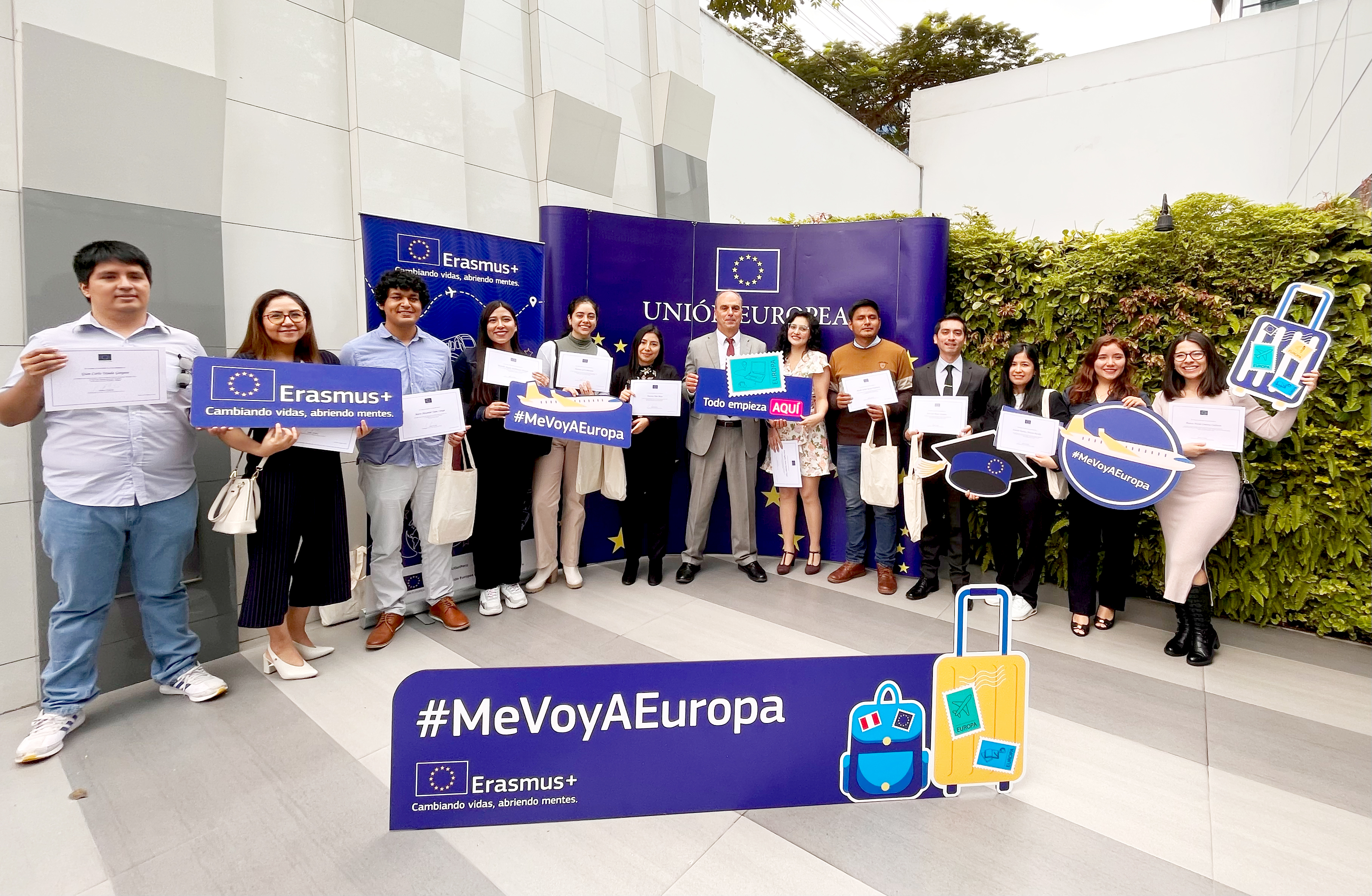 En ceremonia realizada en la Delegación de la Unión Europea en Perú, se despidió a los 20 jóvenes peruanos que ganaron este 2023 una beca con todo incluido para estudiar en Europa y realizar una Maestría Conjunta Erasmus Mundus.