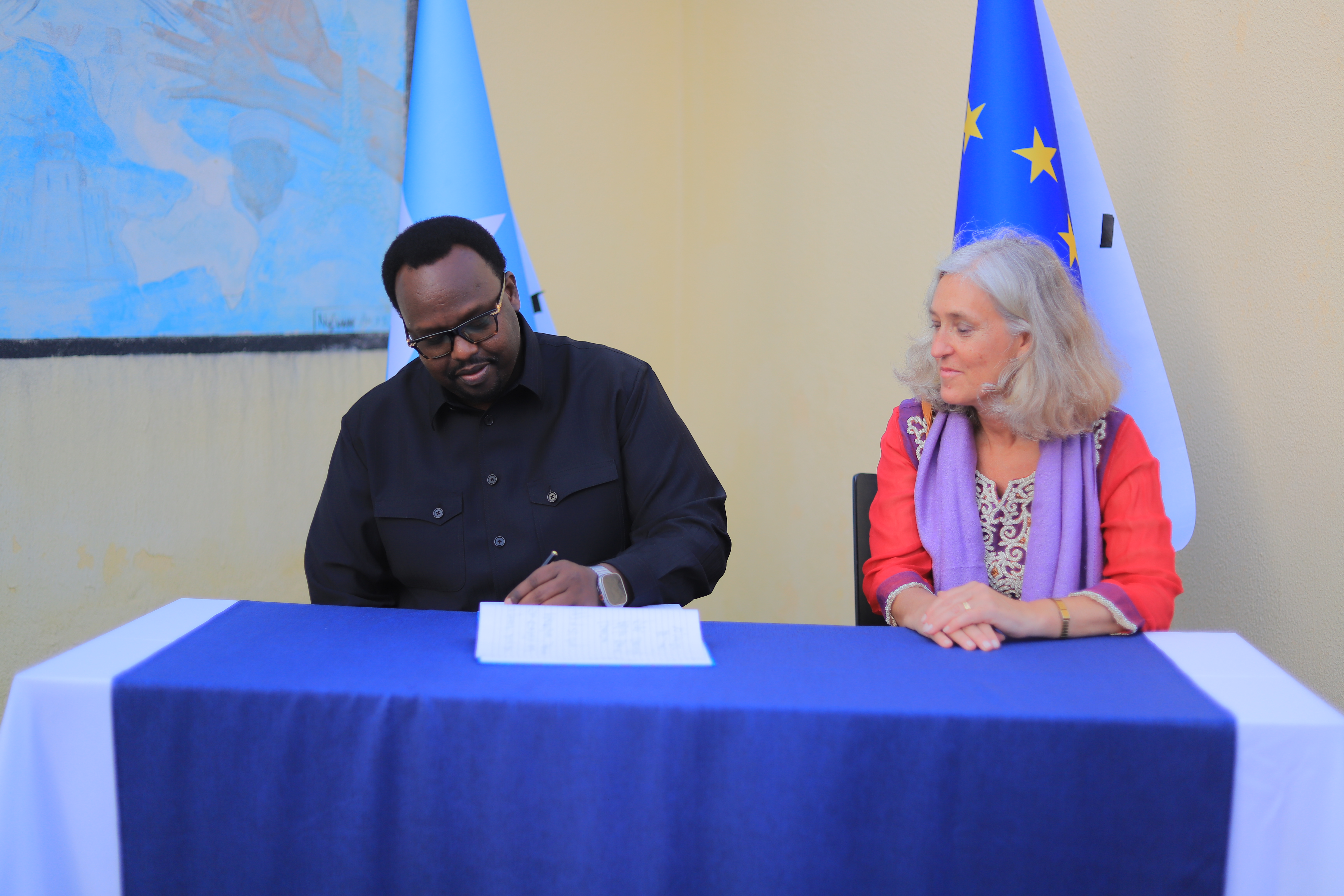 The Guest of Honour, Salah Ahmed Jama, First Deputy Prime Minister of the Federal Government of Somalia, was welcomed at the compound and signed the official guest book, symbolising the close cooperation between the EU and Somali authorities.