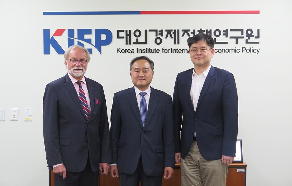 Michael Reiterer, Ambassador of the European Union (EU) to the Republic of Korea (RoK), visited the Korea Institute for International Economic Policy (KIEP) on Thursday, May 21 to hold a meeting with Acting President Chung Chul and share his insights during a Leading Experts Seminar (LES).