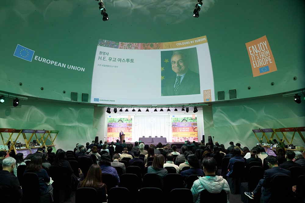 The programme opened with a welcome speech by H.E. Ugo Astuto, EU Ambassador to the Republic of Korea, followed by a presentation from Mi-Gyoung Kim, Trade Officer at the EU Delegation to Korea, who outlined the EU’s unified agri-food framework and the shared standards underpinning the quality, authenticity, sustainability, and safety of EU food.