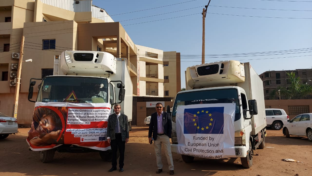 The supplies arrived with an EU-chartered plane in Khartoum from Save the Children East and Southern Africa Regional Office. The arrival of the plane was overseen by the Ambassador of the European Union to Sudan, Robert van den Dool, together with H.E. Mohamed al-Faki, Member of Sovereign Council, H.E. Lena Elsheikh, Federal Minister of Labour and Social Development and H.E. Dr. Osama, acting Federal Minister of Health, in addition to the governors of Khartoum and River Nile states.