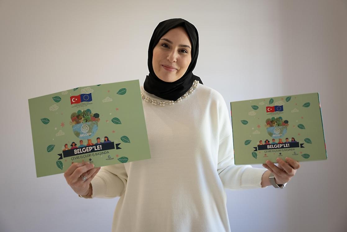 Reyyan Erdoğan, a sociologist working at the General Directorate of KOSKİ, explains that they designed an educational board game for children to raise awareness about water and the environment.