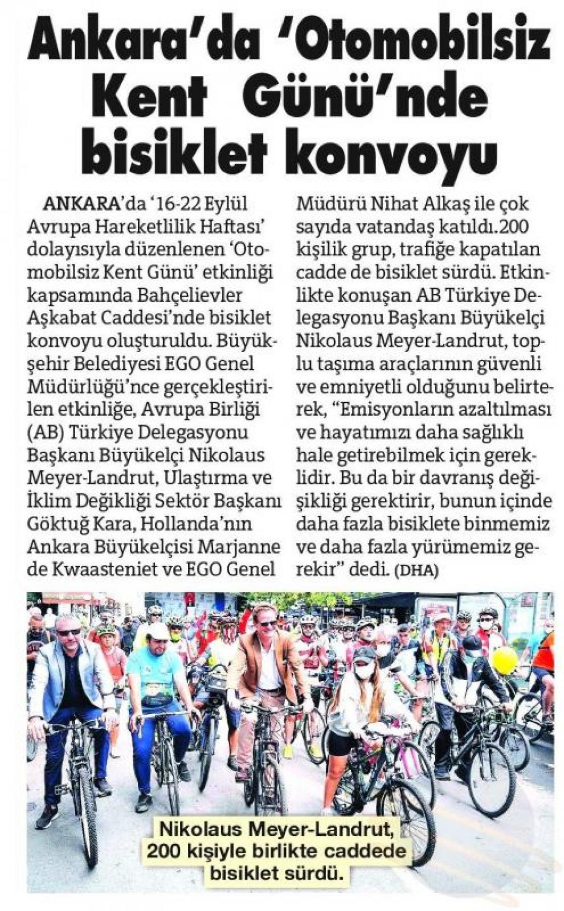 Residents of the capital made the most of the city's roads after they were shut down to traffic to mark Car-Free Day. Cyclists put an end to the reign of motorists at an event staged in honor of European Mobility Week. EU Ambassador to Turkey Nikolaus Meyer Landrut was also in the bicycle convoy! You can find the video of the bicycle convoy here.