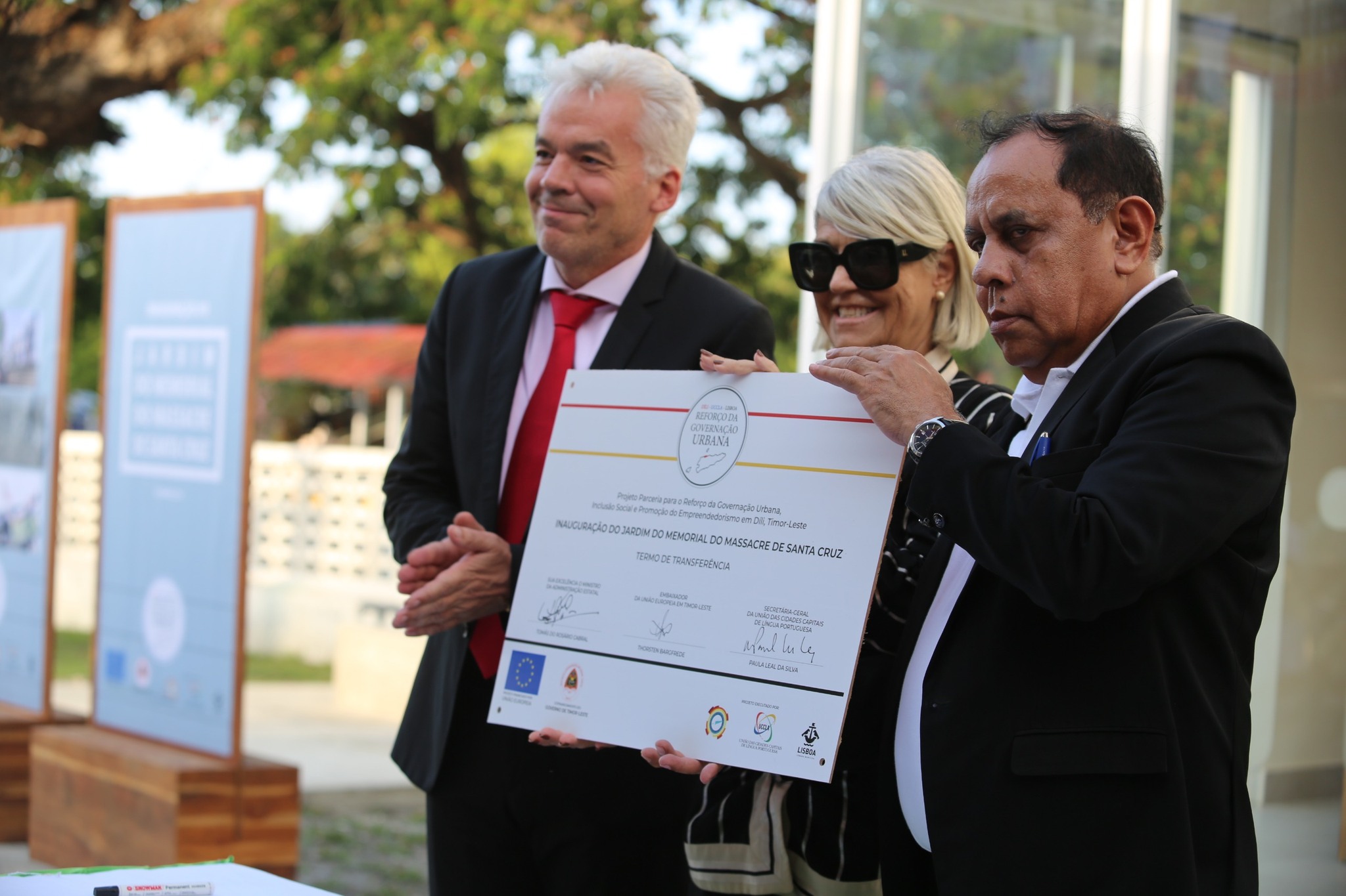 Funded by the European Union and co-finance by the Timor-Leste government, the project presented the latest redeveloped public space in the capital, which features green spaces, pedestrian areas, lighting, public toilets, a memorial and an interpretation centre where people can pay tribute and remember the Santa Cruz Massacre, which took place on 12 November 1991 and marked a turning point in the struggle for the liberation of Timor-Leste.