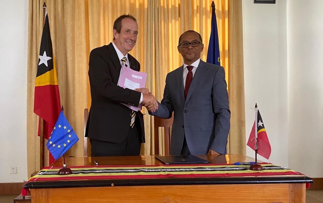 The Minister of Foreign Affairs and Cooperation H.E. Dionisio Babo Soares and the Ambassador of the European Union to Timor-Leste H.E. Andrew Jacobs signed a financing agreement to launch a new programme to supporting the Deconcentration and Decentralisation process in Timor-Leste.