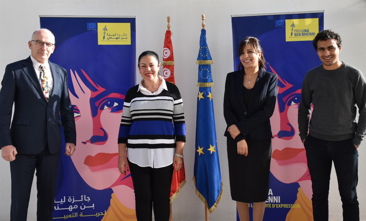 L'ambassadeur de l'Union européenne en Tunisie, Marcus Cornaro, a remis, le 20 janvier 2021, les prix aux lauréats du concours Lina Ben Mhenni pour la liberté d'expression :