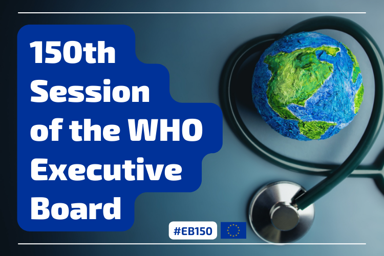 During the 150th Meeting of the WHO Executive Board, the EU strongly engaged in a wide variety of topics on the agenda with a record number of 17 EU statements. The EU also co-sponsored three resolutions focussing on health and peace, intellectual property and International Health Regulations.