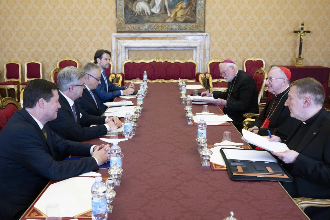 EU Commissioner Jozef Sikela, in charge of International Partnerships, and EU Commissioner Magnus Brunner, in charge of Internal Affairs & Migration, exchanged views with Cardinal Pietro Parolin and Archbishop Paul Gallagher on the role of official development assistance in times of high geopolitical uncertainty, the implementation of the reform of the Common European Asylum System, interreligious dialogue, EU-Africa cooperation and EU-CELAC cooperation.