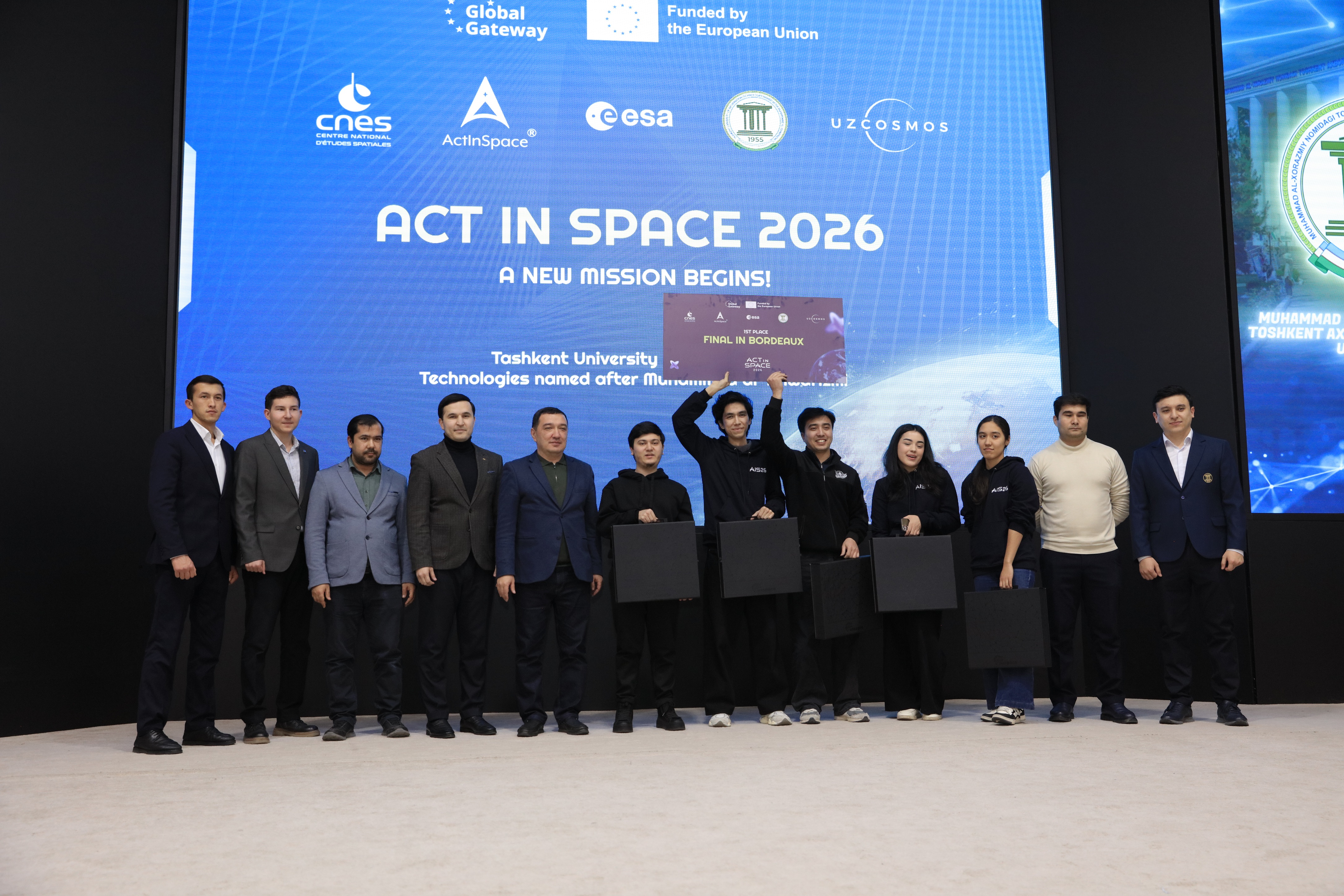 Digital government agencies and academia in Kazakhstan and Uzbekistan also supported the competition: namely, in Kazakhstan the Aerospace Committee of the Ministry of Artificial Intelligence and Digital Development of the Republic of Kazakhstan, Republican Centre for Space Communication and Satbayev University, while from Uzbekistan the Space Research and Technology Agency under the Ministry of Digital Technologies of the Republic of Uzbekistan and Tashkent University of Information Technologies named after Muhammad al-Khwarizmi.
