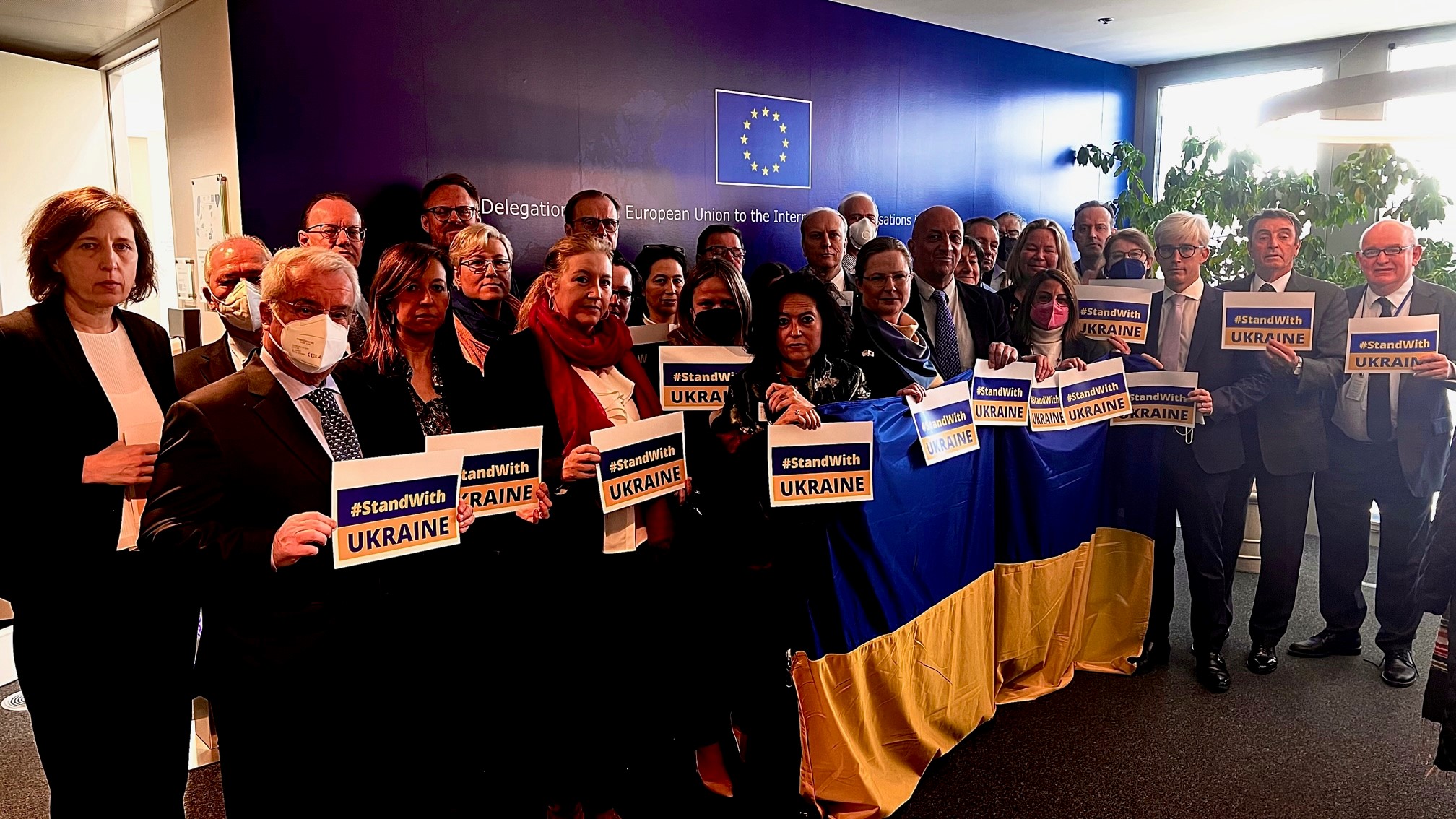 The EU Delegation to the International Organisations in Vienna stands united and together in solidarity, friendship and steadfast support with Ukraine and the Ukrainian people.