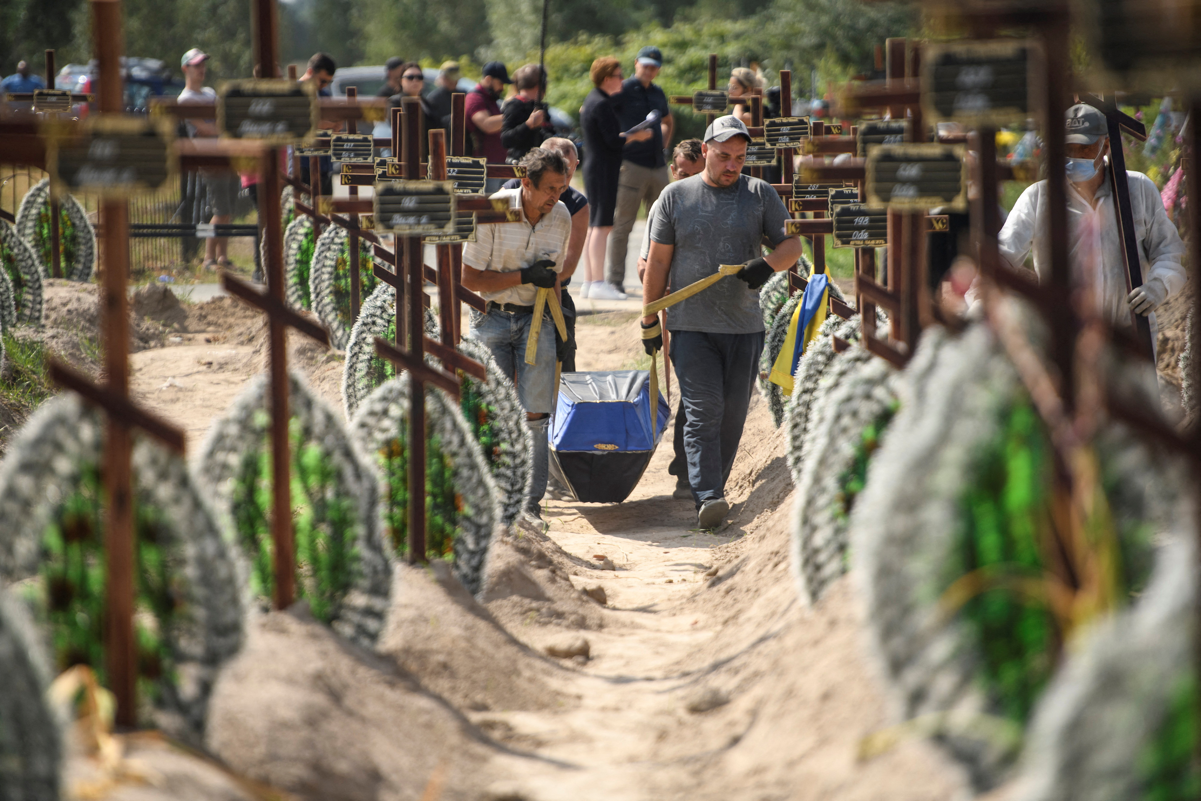 После освобождения украинскими войсками в сентябре 2022 года города Изюма было найдено массовое захоронение, насчитывавшее более 440 тел. На многих останках были следы пыток, казни и увечий. У некоторых жертв были сломаны кости, связаны руки, и они были убиты выстрелами в голову, подобно ужасному сценарию Бучи.