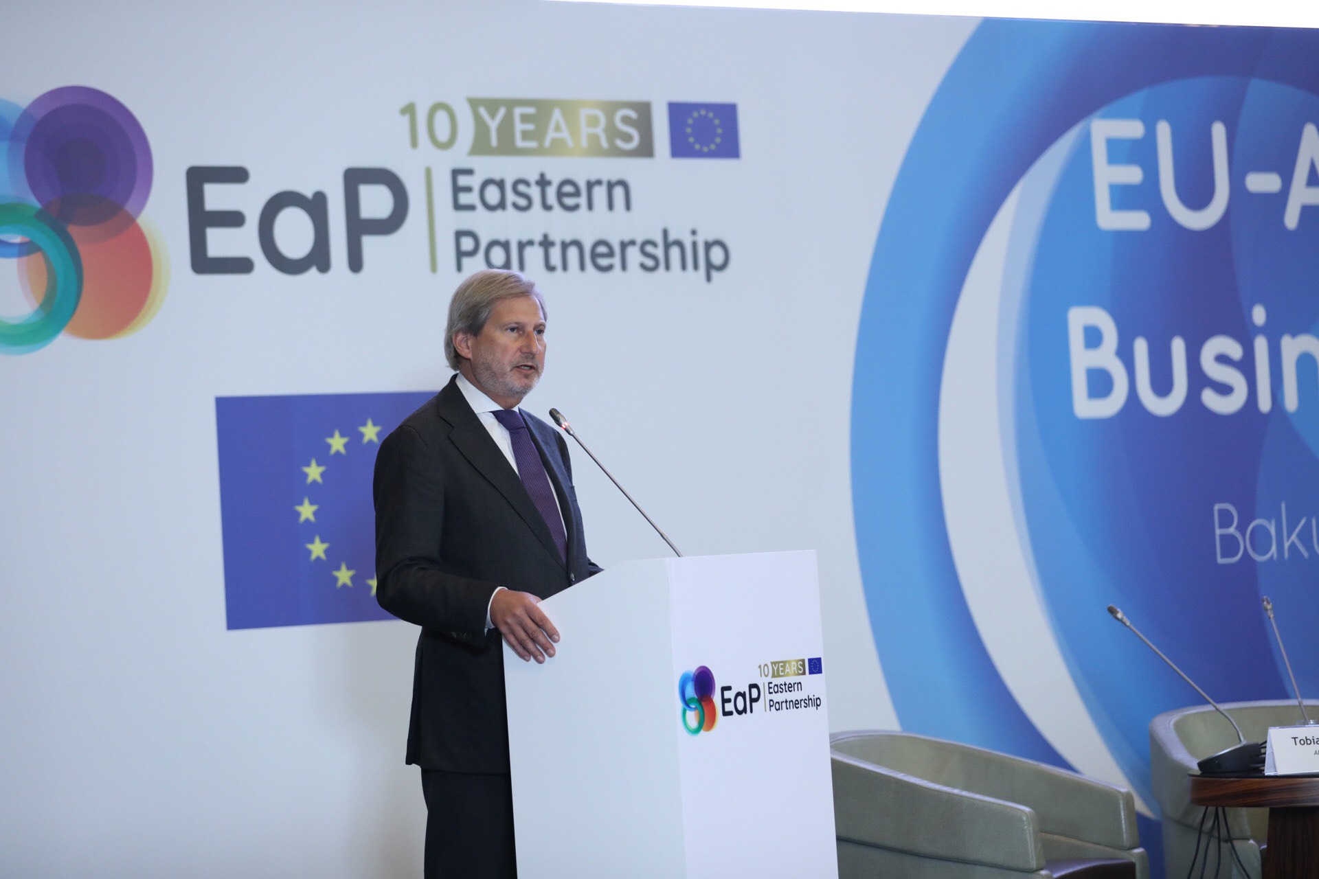 Azərbaycanın İqtisadiyyat naziri cənab Mustafayev və Aİ komissarı cənab Hahn beşinci Aİ-Azərbaycan Biznes Forumunun açılışını ediblər. Hər il keçirilən tədbirə ikitərəfli biznes görüşlərində və panel müzakirələrində iştirak edən hökumət nümayəndələri və biznes rəhbərləri də daxil olmaqla, 800-dən artıq iştirakçı qatılıb.