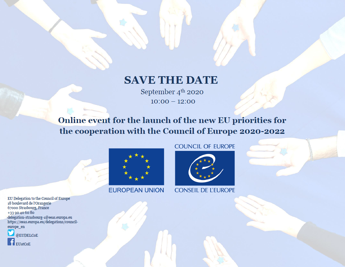 Events Save the date: Online event for the launch of the new EU priorities for the cooperation with the Council of Europe 2020-2022