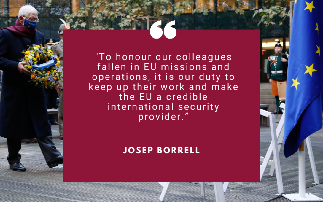 “It was very moving to see all these soldiers from our member states gathered in the courtyard of the EEAS around the stele, which pays tribute to those who have fallen in the service of the European Union.”