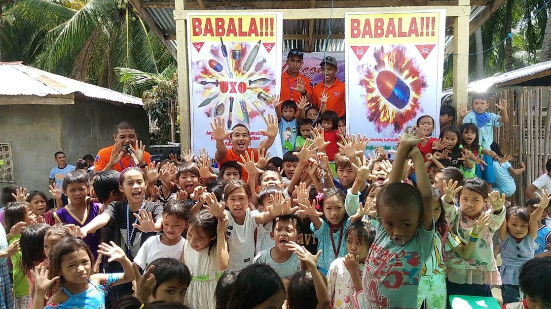 Across the globe, children are educated about the risks of mines thanks to EU funding. Here below children in the Philippines are showing the hand gestures they learnt during an Explosive Ordnance Risk Education session.