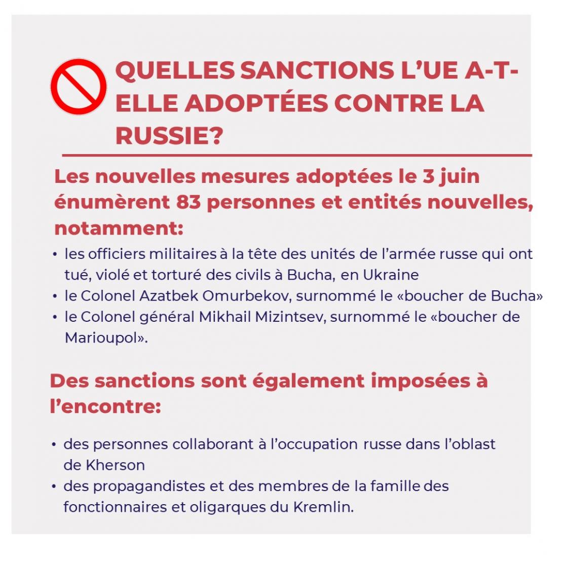 L’UE montre une fois encore que la Russie paiera un prix élevé pour son invasion illégale de l’Ukraine. Nous avons adopté: