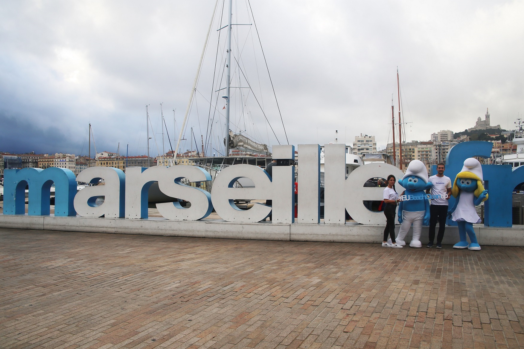 The Smurfs go to France for #EUBeachCleanUp in Marseilles