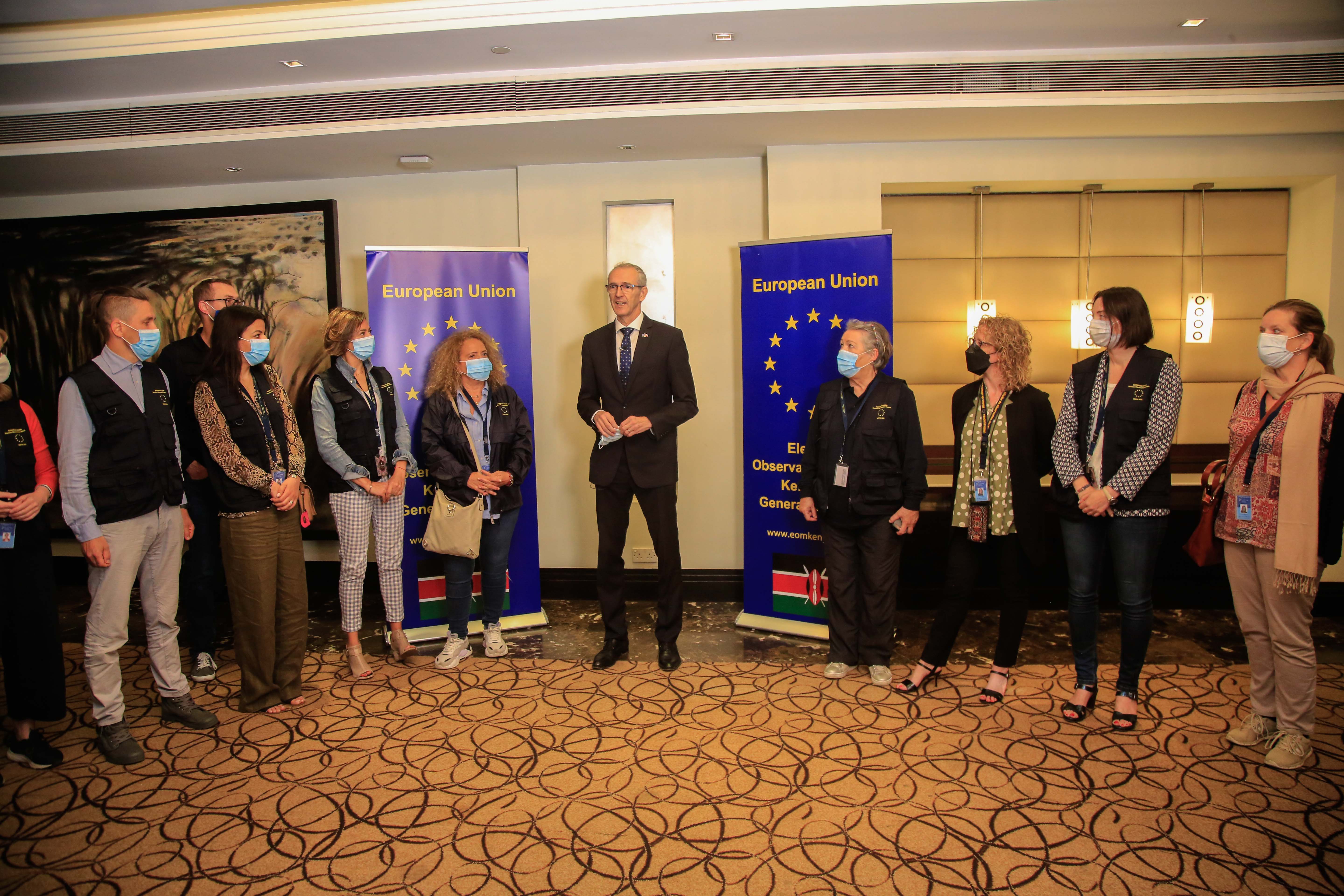 Breadcrumb EEAS EOM Kenya 2022 Deployment of Long-term observers Kenya 2022 PRINT Deployment of Long-term observers Kenya 2022 14.07.2022 Nairobi, Kenya 9 Pictures Image Beata Martin-Rozumiłowicz, Deputy Chief Observer of the EU EOM Kenya 2022 addressing Long-term observers shortly before their deployment Image Beata Martin-Rozumiłowicz, Deputy Chief Observer of the EU EOM Kenya 2022 addressing Long-term observers shortly before their deployment Image Ivan Štefanec, Chief Observer of the EU EOM Kenya 2022 addressing Long-term observers shortly before their deployment Image EU EOM Kenya 2022, deployment of Long-term observers Image EU EOM Kenya 2022, deployment of Long-term observers Image EU EOM Kenya 2022, deployment of Long-term observers Image EU EOM Kenya 2022, deployment of Long-term observers Image EU EOM Kenya 2022, deployment of Long-term observers Image Beata Martin-Rozumiłowicz, Deputy Chief Observer of the EU EOM Kenya 2022 addressing Long-term observers prior to their deployment Image Beata Martin-Rozumiłowicz, Deputy Chief Observer of the EU EOM Kenya 2022 addressing Long-term observers shortly before their deployment 1/9 Pictures Image Beata Martin-Rozumiłowicz, Deputy Chief Observer of the EU EOM Kenya 2022 addressing Long-term observers shortly before their deployment 2/9 Pictures Image Ivan Štefanec, Chief Observer of the EU EOM Kenya 2022 addressing Long-term observers shortly before their deployment 3/9 Pictures Image EU EOM Kenya 2022, deployment of Long-term observers 4/9 Pictures Image EU EOM Kenya 2022, deployment of Long-term observers 5/9 Pictures Image EU EOM Kenya 2022, deployment of Long-term observers 6/9 Pictures Image EU EOM Kenya 2022, deployment of Long-term observers 7/9 Pictures Image EU EOM Kenya 2022, deployment of Long-term observers 8/9 Pictures Image Beata Martin-Rozumiłowicz, Deputy Chief Observer of the EU EOM Kenya 2022 addressing Long-term observers prior to their deployment 9/9 Pictures