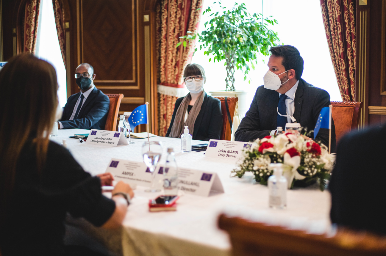 Breadcrumb EEAS EOM Kosovo 2021 Chief Observer Meetings PRINT Chief Observer Meetings 30.09.2021 Chief Observer Meetings with Prime Minister, party representatives, and civil society organisations MORE STORIES STORY Welcome to our new website STORY EU Election Observation Mission to Kosovo: the real work begins STORY LTO Midterm Briefing STORY Election Day and Runoff Election Day in Kosovo Municipal Elections 2021 STORY STO Briefing and Deployment See more