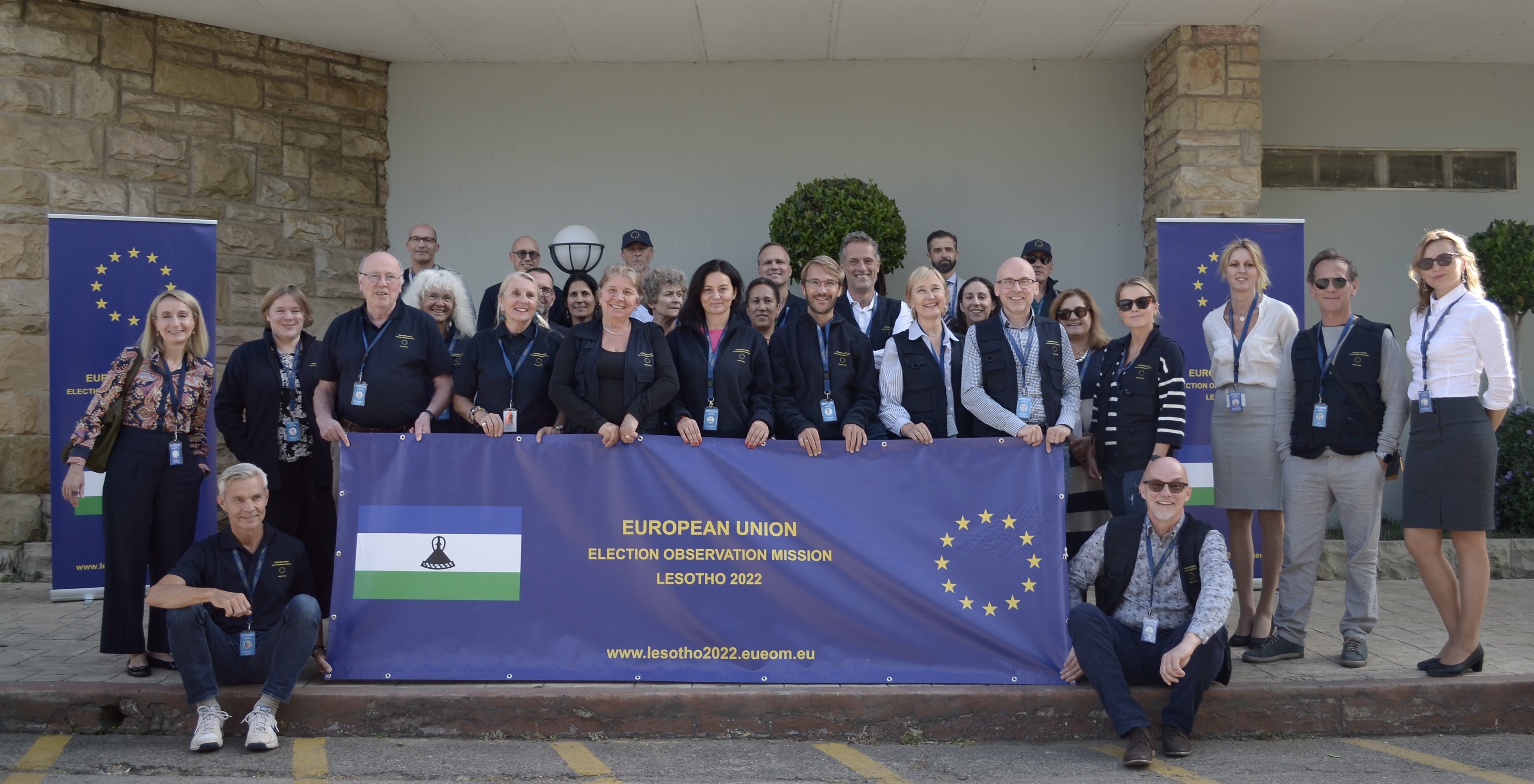EU EOM Lesotho 2022 Long-Term Observers (LTO) in a group photo